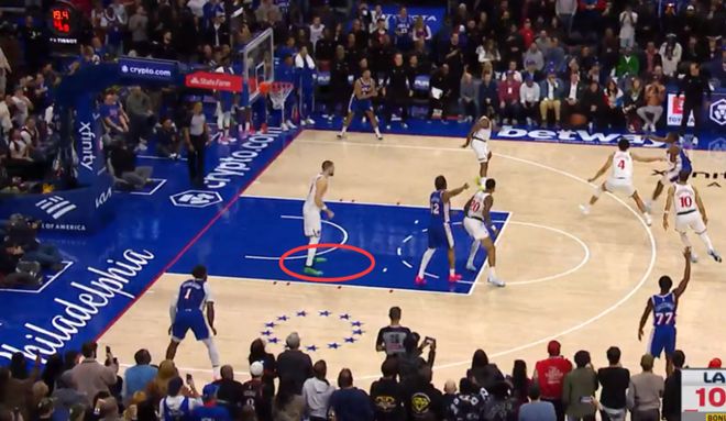 第二次漏判,发生在距离比赛结束还有19.3秒,快船的祖巴茨在没有积极防守对方球员的情况下在己方禁区停留时间超过3秒,这也是一次漏吹的防守三秒违例,快船获利,76人吃亏。
